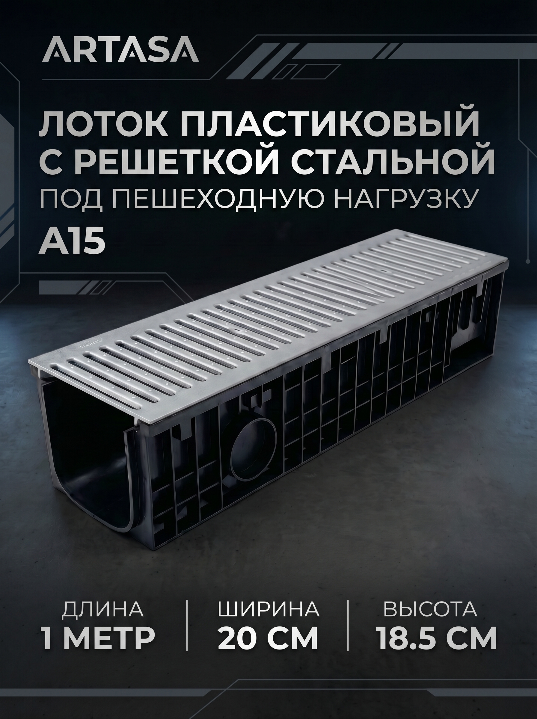 Данный комплект предназначен для организации поверхностного водоотвода на частных и общественных территориях. Оптимален для зон с низкой нагрузкой — пешеходные дорожки, тротуары, садовые участки, зоны вокруг дома.